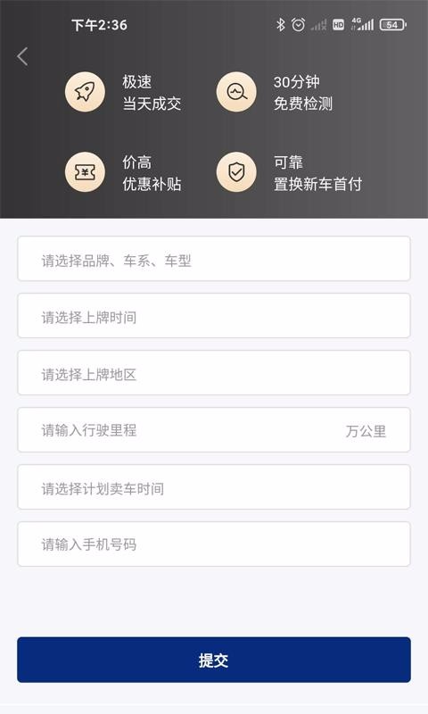 4、卖爱车将车辆的详细信息及使用情况填写清楚即可一键提交买车申请;
