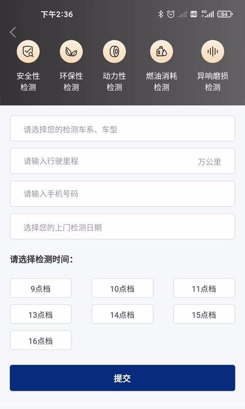 6、检测类型选择并填写检测车辆的信息即可预约检测时间,提高办事效率;