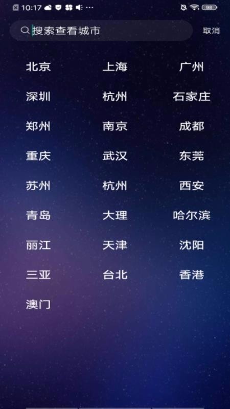 6、一次能看到多个城市天气标签,只要添加关注的城市就能在搜索查看城市的时候看到多个城市的天气标签;
