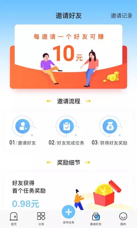 5、应用中有任务记录版块,让用户能够清晰的看到自己完成的任务和获得的赏金信息;