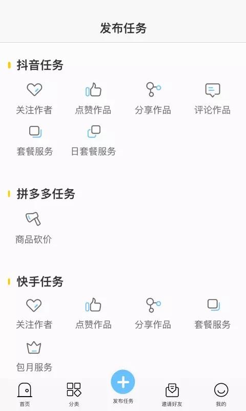 4、进入任务发布版块,查看详细的任务类型,选择任务进行快速发布