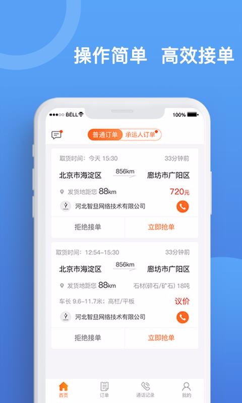 2、选择一个订单点击立即抢单,或点击拒绝接单拒绝