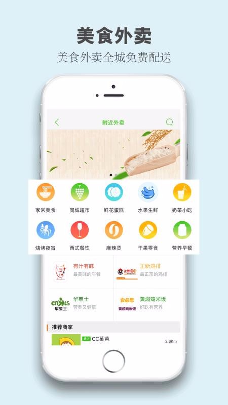 4、附近外卖中划分了更多品类专区,有家常美食、鲜花蛋糕、水果生鲜以及奶茶小吃等;