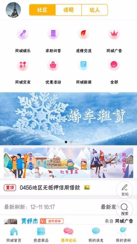 4、选择黑河论坛,直接查看社区、选择话题、达人等内容进行详细了解