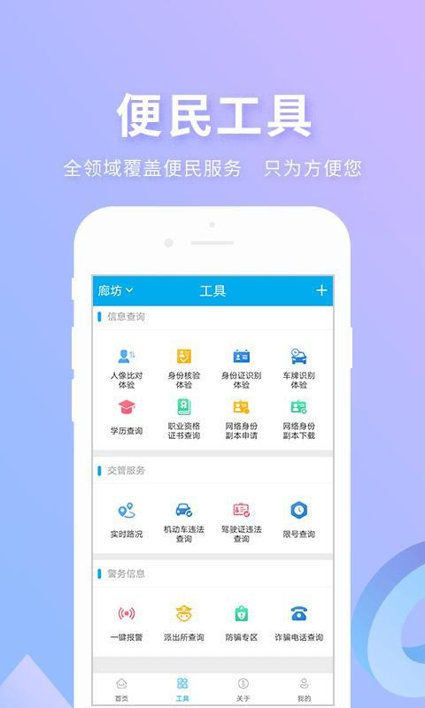 3、点击工具,查看各种便民工具信息,选择需要的服务快速体验