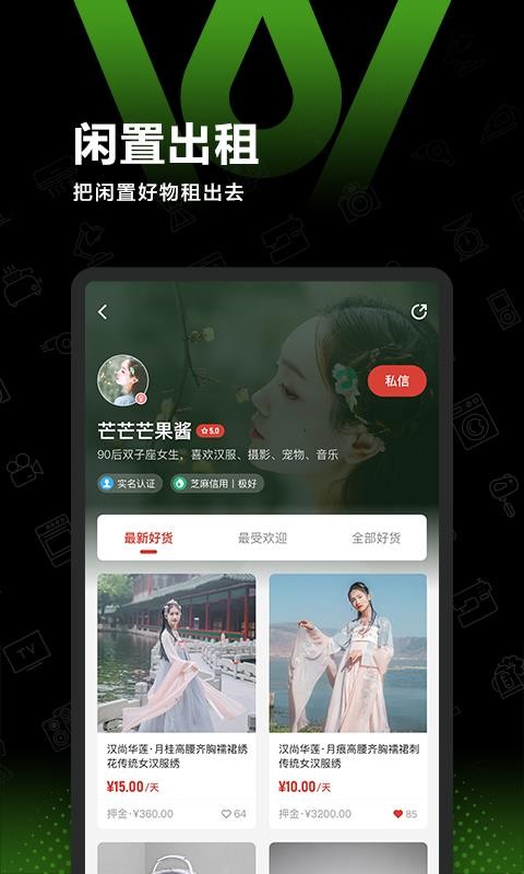5、用户可以和其他人在线私信,交流各种物品租赁问题,轻松的进行沟通;