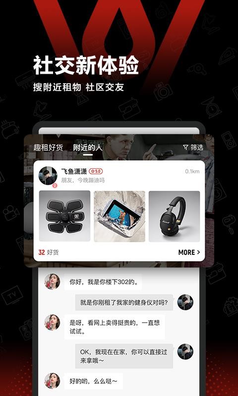 2、拥有附近的人版块,在这里你可以看到附近用户的出租信息,方便租赁;