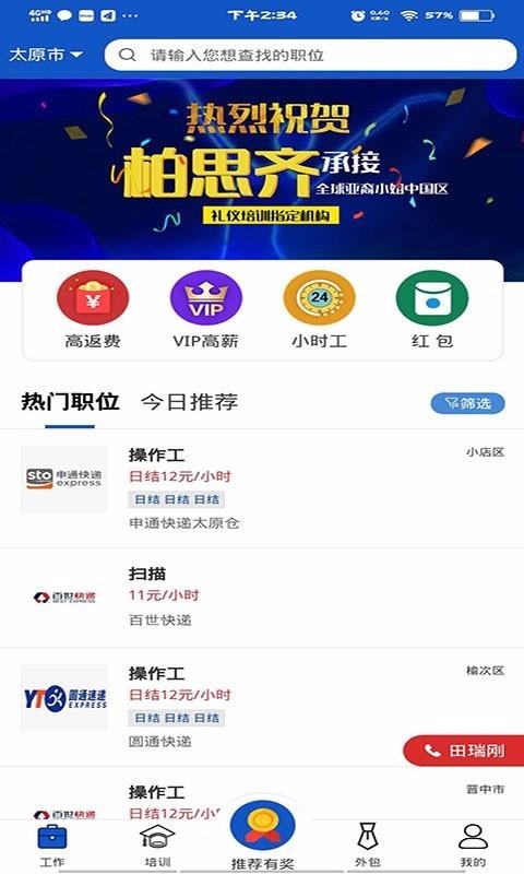 2、点击工作,直接查看平台推荐的热门职位以及每日更新职位等