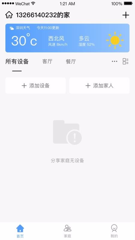 3、分享设备到平台中,用户可以将家庭中的设备分享到家庭中供家人们操控使用;