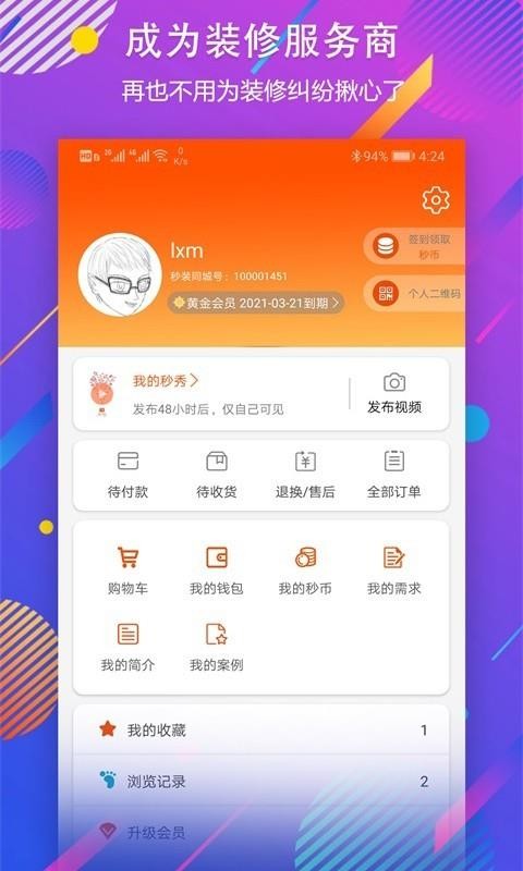 5、打开个人中心,查看自己的订单信息,了解收藏和浏览的各种案例内容