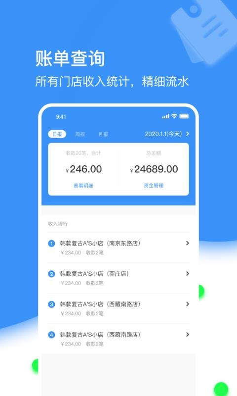4、点击账单信息,能够清楚的看到店铺的收入情况