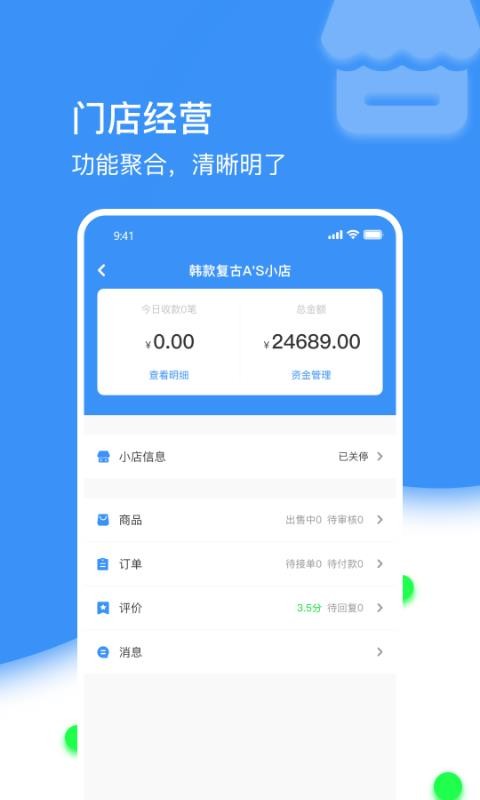 街逛商家版是一款为商家提供服务的软件,用户在平台里可以随意的进行使用,实时的帮助商家更好的管理店铺信息,让商家通过平台能够更好的管理自己的订单信息,得到更多的帮助,快速的处理各种订单问题。平台具有强大的管理功能,用户在使用的时候可以随意的进行选择,让你能够清楚的了解商家的出售情况,实时的解决你的管理问题,通过线上的经营方式,帮助用户更好的进行营销,快速的提升你的商品曝光度,让更多的客户能够快速的了解你的商品信息,更好的进行购买,打响你商品的知名度,通过平台能够快速的进行使用,非常的方便。