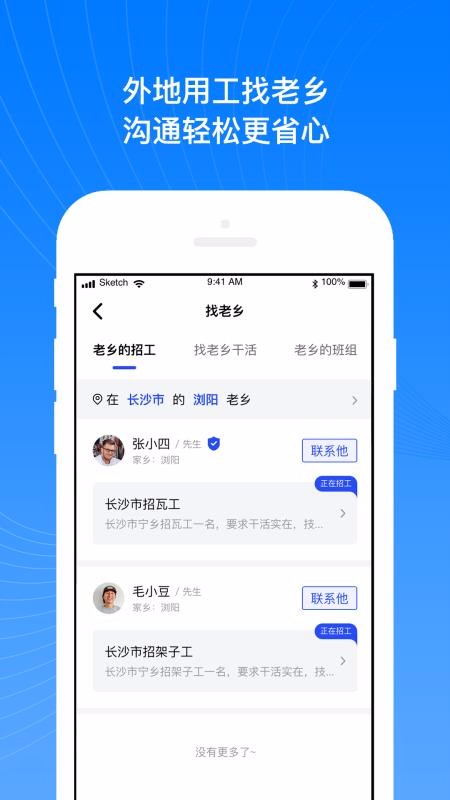 工地招工宝是一款面向建筑劳务行业的招工与找活软件,工人们可以在找工作专区中找到适合自己干的活,同时建筑负责人等用户可在找工人专区找到海量的工人资源;除了可以找工作或找工人之外,还可以在找班组中心找到优质的班组工人,也可以在找老乡中找到同乡的好友或同乡的工人;不需要自己到某些专区中去查找,在首页会展示最新的招工以及最新的找活专栏,两个栏目中展示了最新的资源信息,及时将近期发布的信息传递到这里,立即能点击联系他的标签联系到招工的经理并询问他关于该招工的具体信息内容,或向该经理表示自己的应聘需求等。