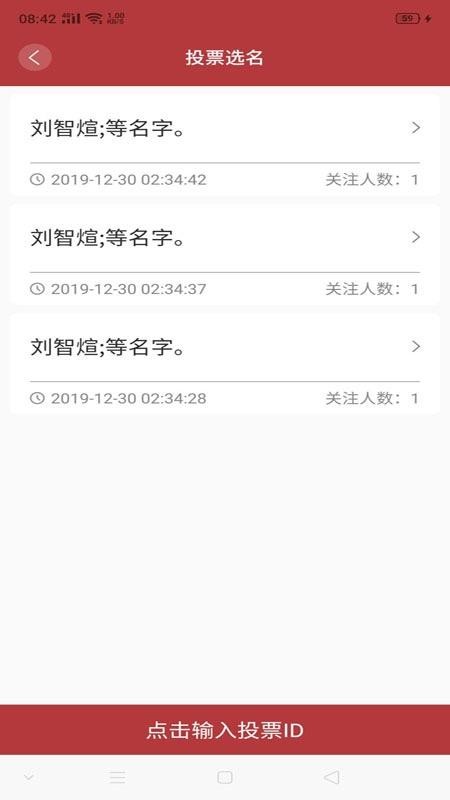 4、参与名字的投票活动,分享的名字投票中参与投票,选出你喜欢的名字;