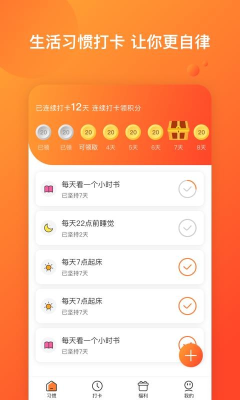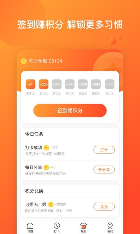 5、签到可以获得更多的积分,让你能够更好的进行使用,用积分解锁更多的习惯;