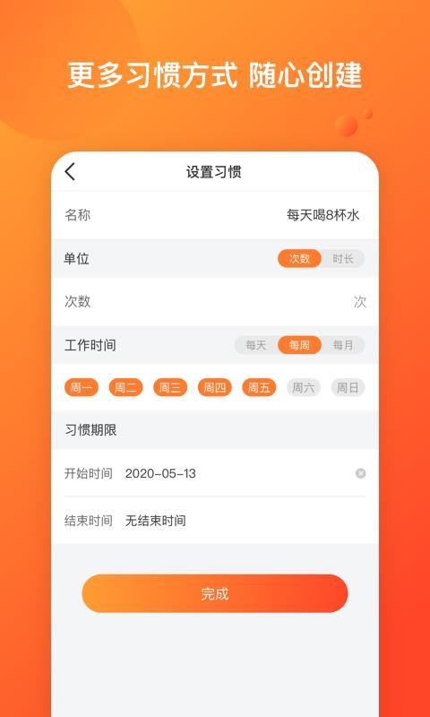 1、用户可以在平台里随意的添加各种习惯,让用户能够更好的进行使用;