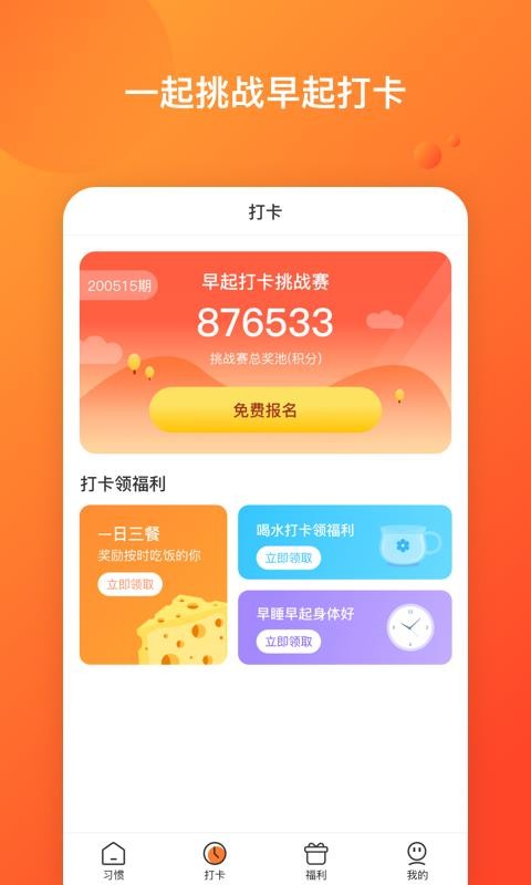 4、通过平台能够免费进行报名,用户能够快速的参加挑战赛,坚持自己的习惯;