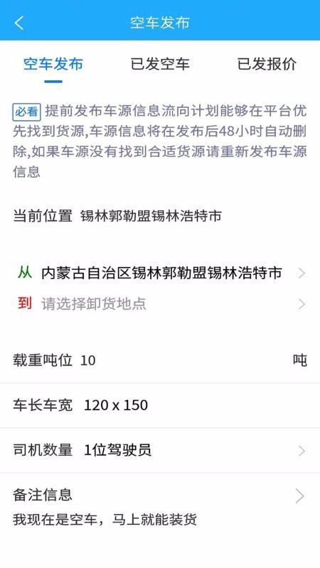6、司机随时发送空车信息,提高找到货源的成功率;