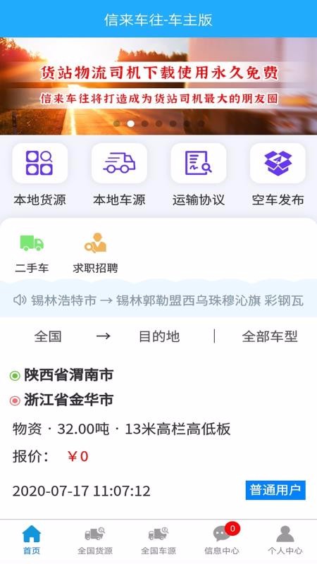 3、为司机提供免费的服务,让司机发布空车信息和运货都方便快捷;