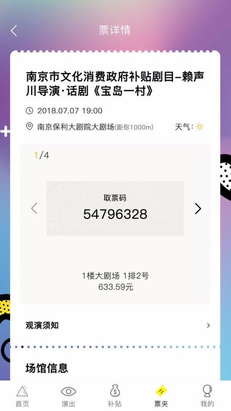 4、票信息,用户订的票的信息实时差看,便于到场观看;