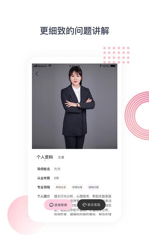4、拥有专业的心理学专家为您在线服务,可以轻松的为你解答你的所有感情问题;