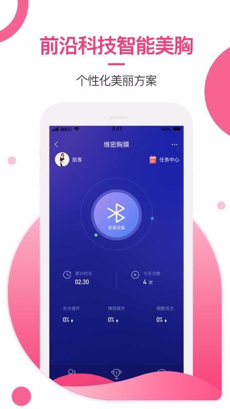 美胸汇是为女性用户们设计的一个丰胸健美服务软件,平台整合了周边的美胸服务体验官以及相应的美胸服务产品,爱美的朋友可以找到附近的美胸服务产品在线预订;这上面提供了一些高科技的美胸智能设备,可以从平台上购买到这些设备仪器,然后自己在家里面也可以给自己的胸部做按摩,疏通胸部中的血脉,让自己的身体更加健康;当用户使用美胸智能设备的时候还可以将设备连接到手机上面,通过应用中的操控功能来对该设备进行操控设置,科学合理的使用该设备,同时记录自己使用设备的时间,根据自己使用设备的时间来统计自己胸部美容的效果。