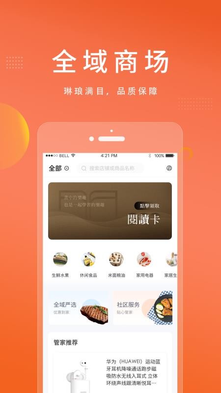 5、打开全域商城,查看商城中的商品,轻松购买自己的日用品和食材
