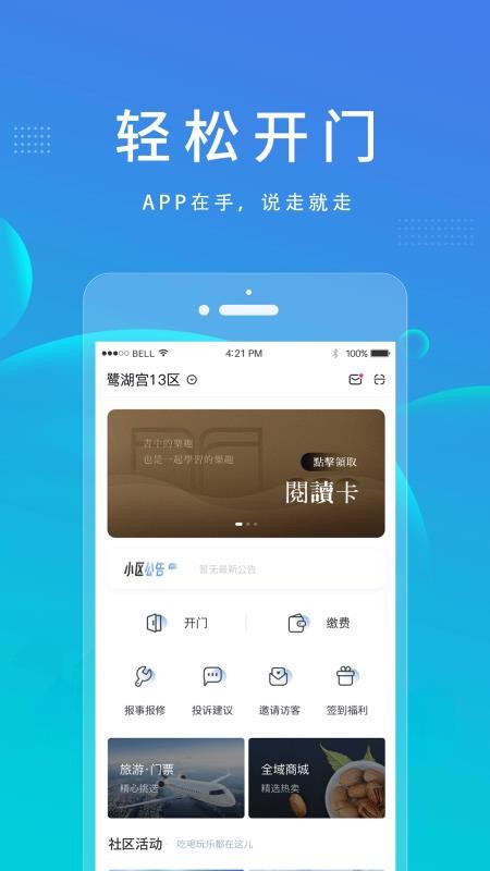 2、点击开门,快速的开启小区门禁,轻松回家,并为朋友添加开门权限