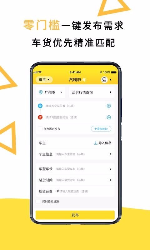 2、选择货主的身份登录应用,选择发布功能编辑货源信息发布