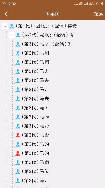 2.观看世系图,家族成员关系一目了然,还可以直接搜索某一人的名字,快捷查找;