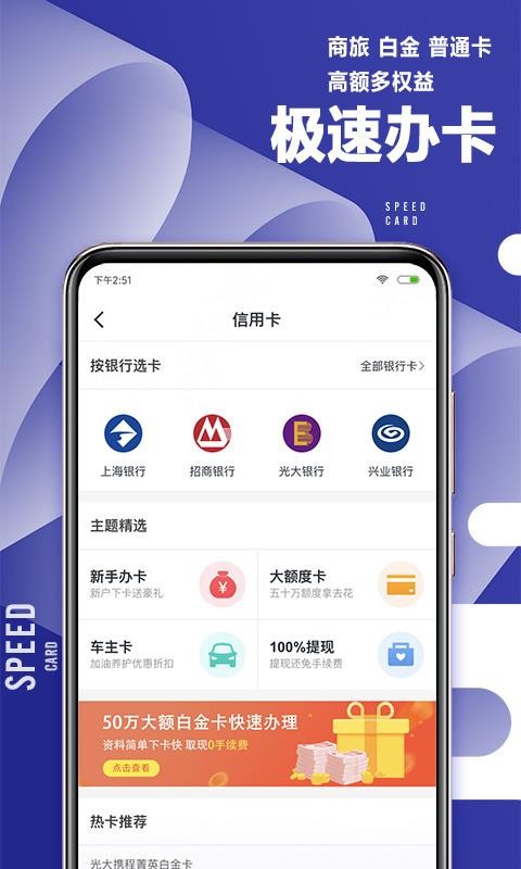 5、为用户推荐各种热门贷款和热门信用卡,让用户能够快捷的进行办理;