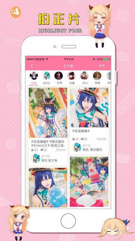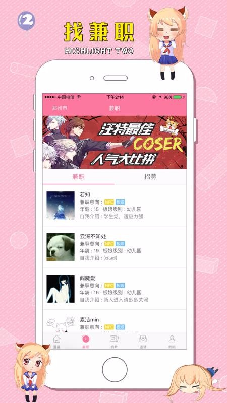 1、该软件中汇集了各种关于动漫的资讯,包括漫展、兼职、COS等;