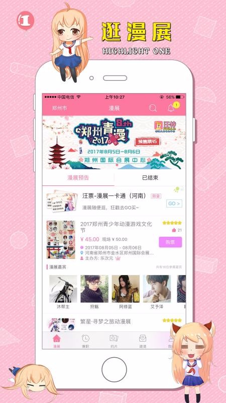 2、可以在这里发现正在进行中和已结束的漫展活动,每一个都有详细的嘉宾介绍;