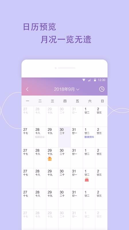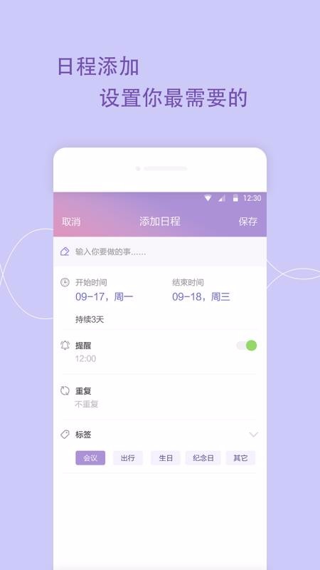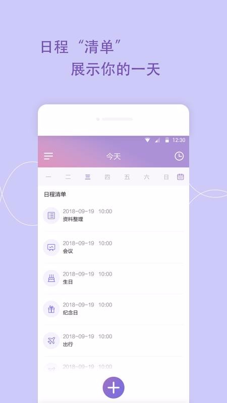 1、操作非常的简单,一键建立日程表,记录自己的每天的日程,让自己的生活和工作变得更有规律。