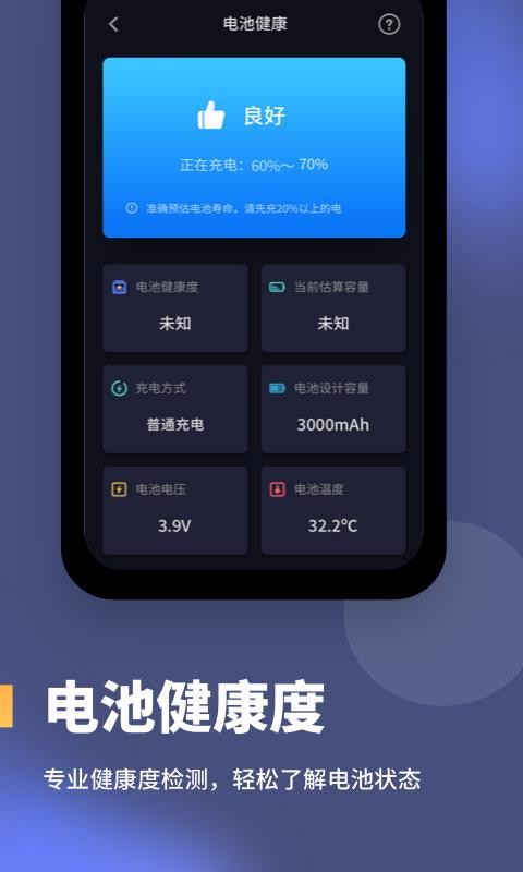 2、为你提供了专业的健康度检测,可以轻松了解电池的状态;