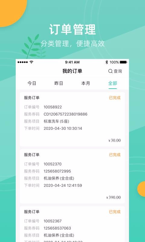 4、划分了不同时间段的订单,我的订单栏中能看到今日、昨日、本月以及全部的订单栏;