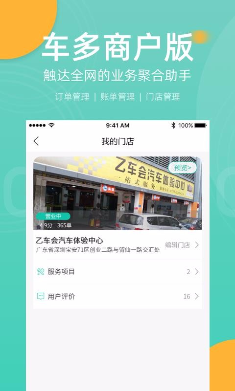 车多合作商是一款为汽车服务商量身定做的一个汽车服务版本软件,商家可以在线添加自己的汽车服务门店信息,对自己的店铺类型编辑;用户需要在添加门店的时候设置门店的用户名称信息内容,同时可以在该过程选择性设置联系人姓名,设置合作的项目,然后编辑店铺的导航位置等信息,轻松完善自己店铺的基本信息设置;在我的订单中可以看到顾客在顾客端下单的服务订单,同时可以按照不同的时段切换查看订单历史信息,使用订单页面中的查询功能可以快速查询店铺中的各种订单内容,只要输入订单的关键词就能立马知道订单所在位置。