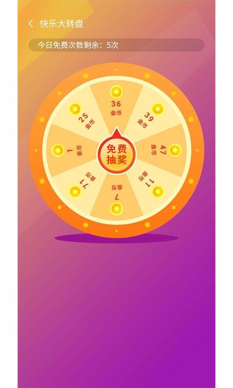 3、该软件拥有快乐大转盘,每日有免费的使用次数,全靠用户运气来获得金币奖励;