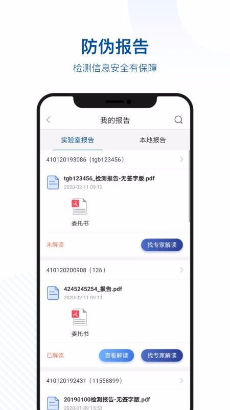 4、点击进入我的报告页面,查看实验室报告或者本地报告