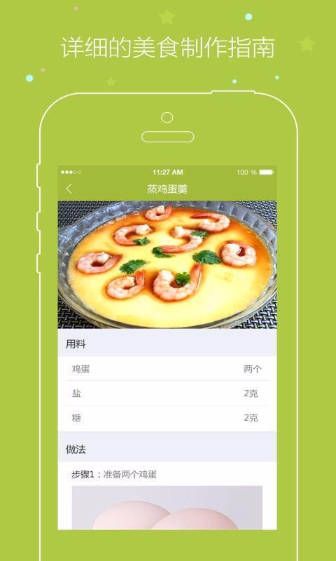 3、在该软件中的食谱都会详细介绍用料和做法,并提供相应的图片展示;