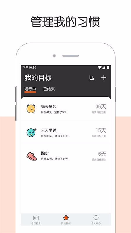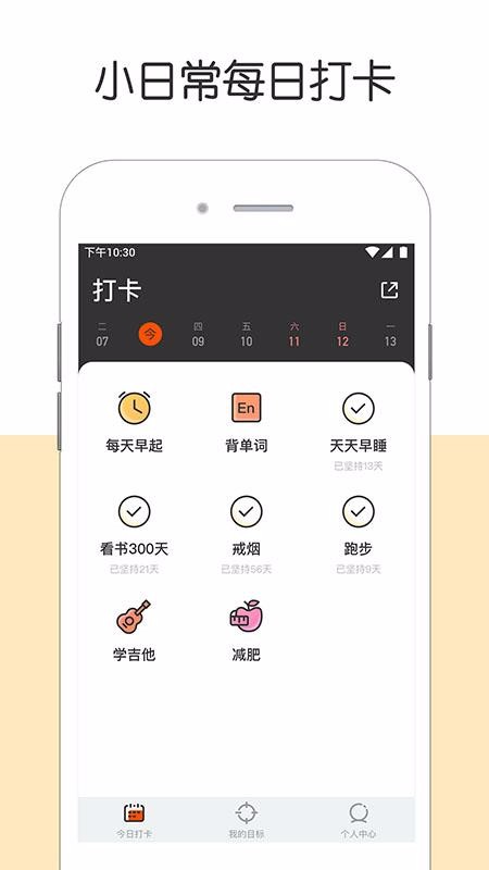 1、能清晰的看到自己打卡任务完成情况,从今日打卡上面的图标能看到自己今天已经坚持打开多少天;
