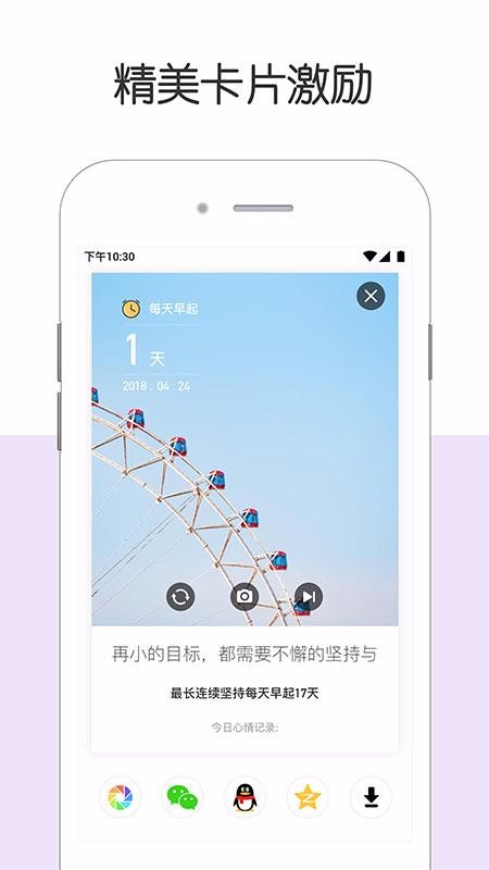 6、拥有非常精美的打卡背景,每天都会有不同的卡片激励背景,还有多种卡片分享渠道;