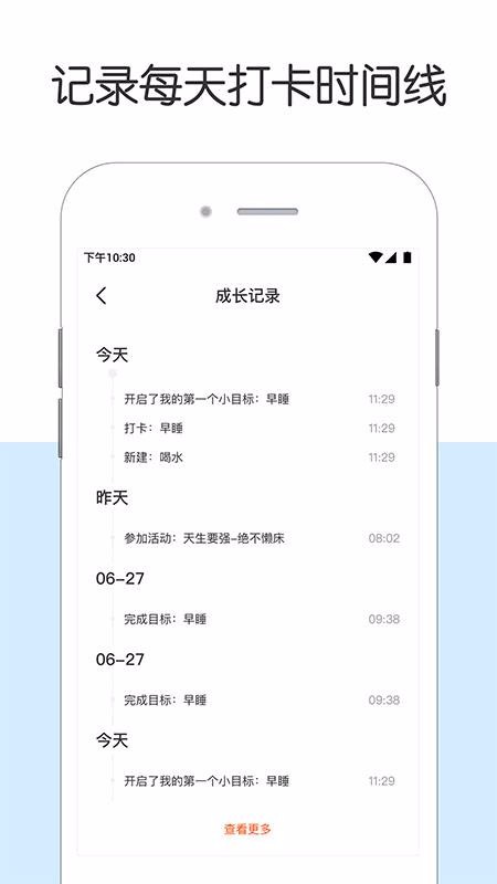 5、进入个人中心点击成长记录,浏览今天一整天自己完成目标的情况