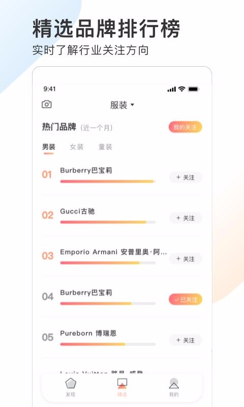 5、快速关注自己喜欢的品牌,使用品牌标签上的关注功能一键将品牌关注;