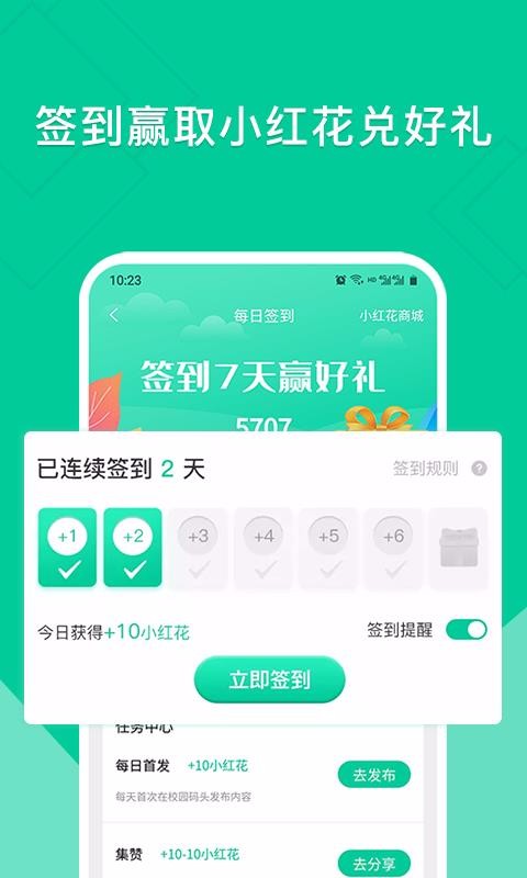 5、打开每日签到页面立即签到,点击签到提醒标签并打开或查看任务去完成