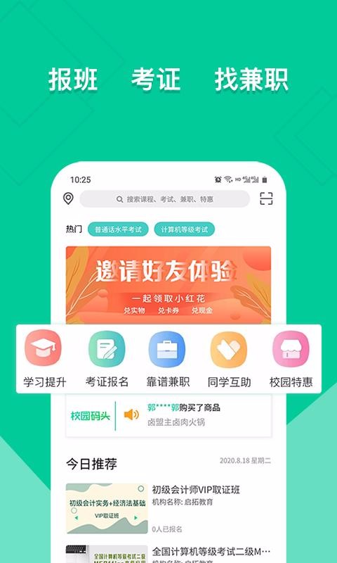 4、筛选并展示了热门的话题标签,首页中会在热门旁边展示普通话水平考试、计算机等级考试等考试标签;