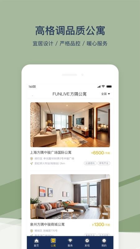 FUN生活app是一款为用户提供租房服务的软件,用户可以在这里看到各种优质的公寓信息,方便快捷的进行租赁;通过软件,用户可以租赁优质公寓自己居住,也可以为公司租赁办公场地,满足各种用户的需求;应用中有各种类型的公寓信息,用户可以在这里轻松找到自己喜欢的公寓,快速的进行租赁,提升生活质量,让自己拥有更优质的生活体验;通过软件,用户还可以体验到各种便捷的日常生活服务,让自己的生活变得更轻松、更方便;快下载这款软件试试吧,方便快捷的租赁各种高品质公寓,满足自己在生活和工作上的各种需要。