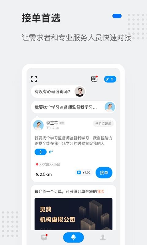1、用户寻找各种服务人员时不仅可以发送文字,还可以发送语音,清晰表达自己的需求;