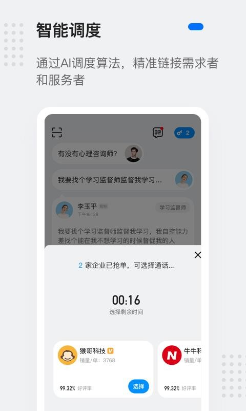 4、当有多家企业接单的时候,用户可以自由选择企业进行通话,从而选择合适的服务人员;