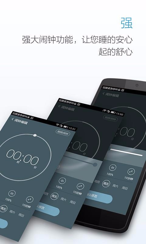 -自定义设置,满足您的喜好:闹钟重复周期和贪睡模式设置,让您不会由于想赖床而错过上班时间;铃声和音量的自定义,让您在每一个早晨伴着喜爱的音乐醒来,带来愉悦的心情。